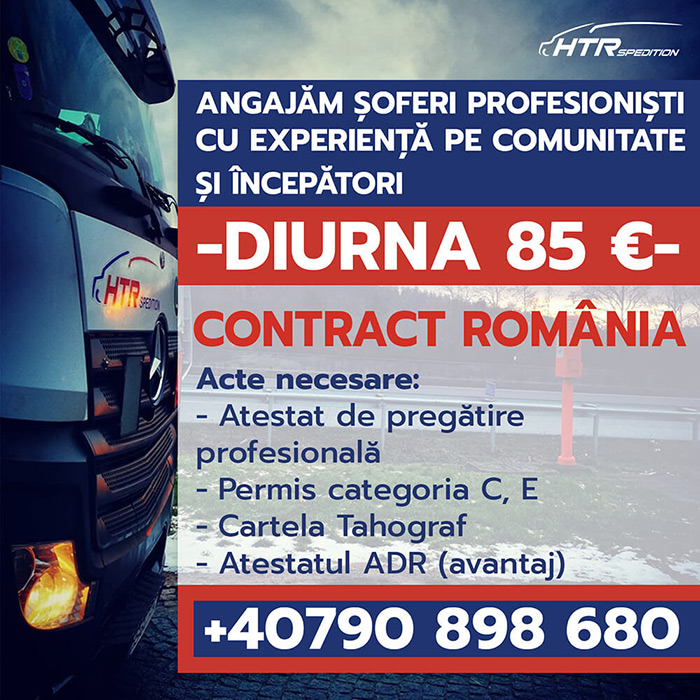 HTR SPEDITION SRL- cea mai mare firmă de transport marfă din Zona Moldovei, angajează șoferi profesioniști cu experiență pentru Comunitatea Europeană.